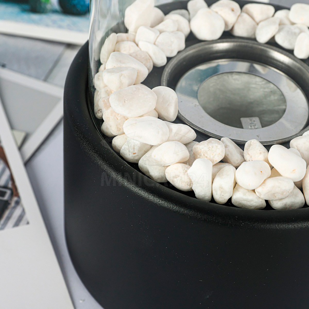 Корпус настольного биокамина во время работы нагревается незначительно, но при контакте с наиболее деликатными поверхностями лучше использовать подставку.